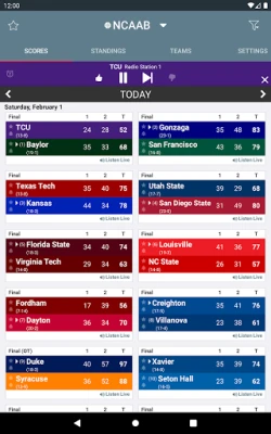 يغطي College Basketball Radio Live مجموعة واسعة من المؤتمرات المرموقة، بما في ذلك مؤتمرات Power 5 الكبرى: ACC، Big 12، Big Ten، Pac-12، وSEC، فضلاً عن فرق مستقلة بارزة. يضمن هذا التغطية الشاملة أن يجد كل مشجع فريقه المفضل، سواء كان يتابع مرشحًا وطنيًا قويًا أو فريق جامعته المحلية. تم تصميم التطبيق ليكون بوابتكم لعالم كرة السلة الجامعية النابض بالحياة، جاعلاً متابعة كل مباراة وتفهم كل إحصائية أمرًا في غاية البساطة والمتعة.