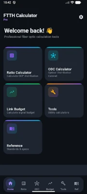 FTTH Calculator Pro هو الأداة الاحترافية المثالية لمتخصصي الألياف الضوئية ومهندسي الشبكات. يوفر التطبيق دعماً أساسياً لتخطيط دقيق وتركيب فعال وصيانة موثوقة لشبكات الألياف إلى المنزل (FTTH)، مما يضمن الكفاءة لأعمال الاتصالات.