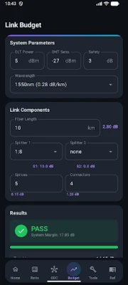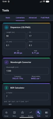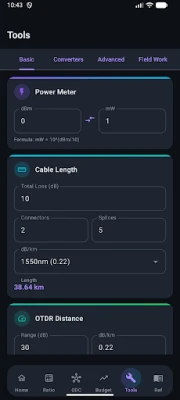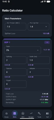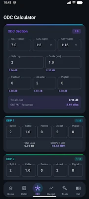 يتميز "FTTH Calculator Pro" بمجموعة واسعة من الحاسبات الأساسية والمتطورة المصممة خصيصًا لتلبية احتياجاتك. يمكنك بسهولة حساب فقدان الطاقة البصرية الكلي، وتحديد ميزانية الوصلة بوضوح مرئي لضمان الأداء الأمثل، بالإضافة إلى حساب خسائر مقسمات PLC ونسب مقسمات FBT بدقة. كما يوفر أدوات متخصصة لتقدير خسائر الموصلات واللحام، وتحويل وحدات الطاقة البصرية dBm إلى mW فورياً. ومع حاسبات ODP و ODC المتقدمة، وظيفته لا تقتصر على الأساسيات، بل تمتد لتحليل توزيع الطاقة المعقد وحسابات المقسمات المتتالية للشبكات الأكثر تعقيدًا.