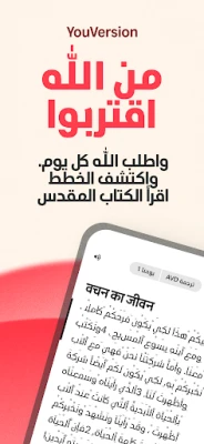تطبيق YouVersion الكتاب المقدس يقدم لك أدوات مجانية يومية للتركيز على الله وكلمته. استمع إلى الكتاب المقدس الصوتي، أنشئ صلوات قوية، ادرس مع أصدقائك، واستكشف أكثر من ٢٠٠٠ ترجمة وإصدار. اجعل إيمانك رفيقاً لك كل يوم.
