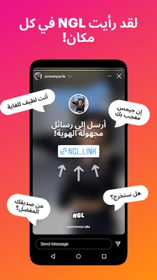 NGL - مجهول الهوية q&a يقدم طريقة ممتعة وآمنة لتلقي رسائل مجهولة على إنستجرام. شارك رابطك والعب ألعاب قصص شيقة. يتميز بتكنولوجيا إشراف متقدمة بالذكاء الاصطناعي لحماية المستخدمين من الألفاظ المؤذية والتنمر، لضمان تجربة إخفاء هوية آمنة.