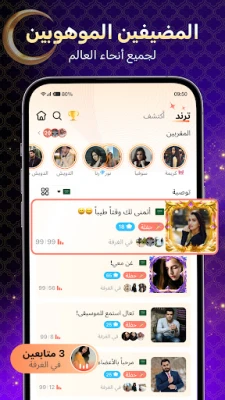 في قلب Saada، تنبض غرف الدردشة الصوتية المباشرة بالحياة، حيث يمكنك الانضمام إلى نقاشات حية بجودة صوت فائقة الوضوح، أو إنشاء مساحتك الخاصة لجمع الأصدقاء ومشاركة شغفك. ليس هذا فحسب، بل يتيح لك Saada الانطلاق في بث مباشر سلس لتشارك مواهبك الفنية، أغانيك المفضلة، أو حتى يومياتك مع جمهور عالمي ودود. عزز تفاعلاتك بإرسال الهدايا الافتراضية الأنيقة والميداليات التقديرية، لتضفي لمسة خاصة من التقدير والبهجة على محادثاتك وتواصلك.